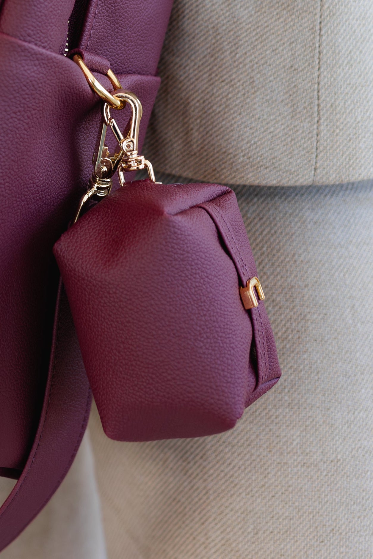 O porta chupetas Ella Bordô é um acessório elegante e funcional que comporta até 3 chupetas com praticidade. Possui pingente removível e pode ser personalizado com nome em letras metálicas de alto padrão. Versátil, também pode ser usado para guardar pequenos itens essenciais no dia a dia da maternidade.