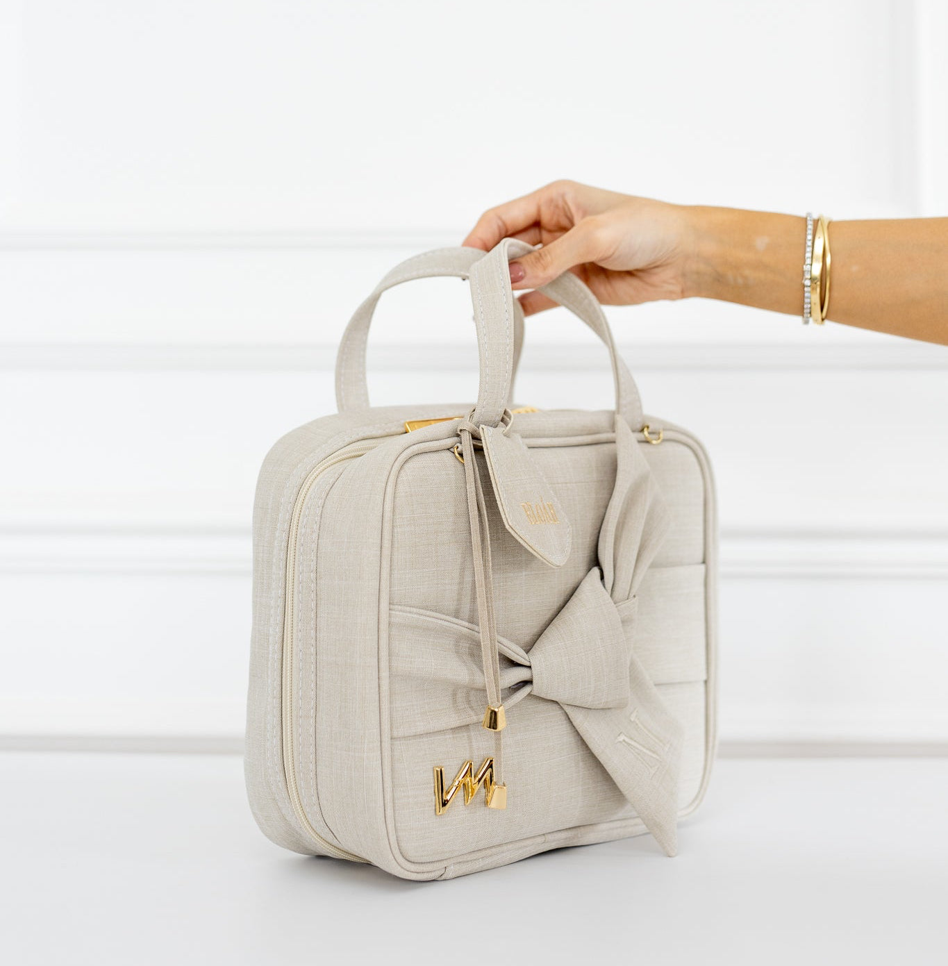 Charmosa e atemporal, a frasqueira térmica da Coleção Nós Bege traz o toque especial do nó decorativo na frente. Com interior impermeável e elástico para mamadeiras, é perfeita para saídas rápidas. A alça tiracolo com detalhe em metal e a personalização completam a peça.