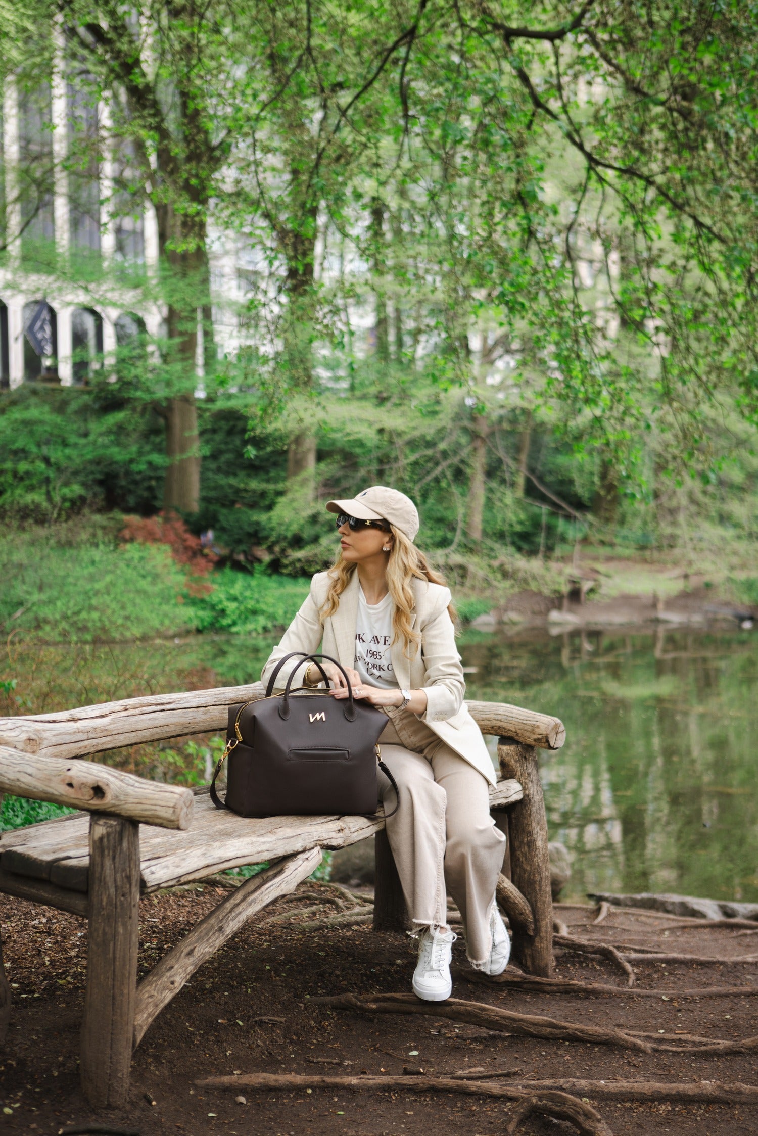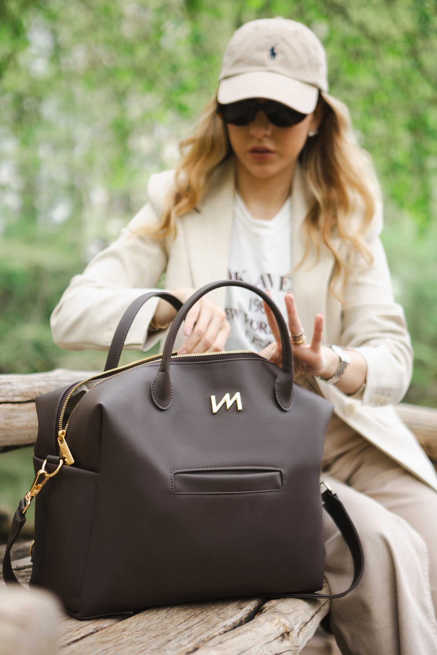 A MADISON Café traduz a maternidade com elegância e sofisticação. Seu tom marrom escuro é clássico e acolhedor, ideal para mulheres autênticas que valorizam estilo e funcionalidade. Inspirada na Madison Avenue, em Nova York, essa bolsa une um design limpo com acabamento premium em couro sintético.