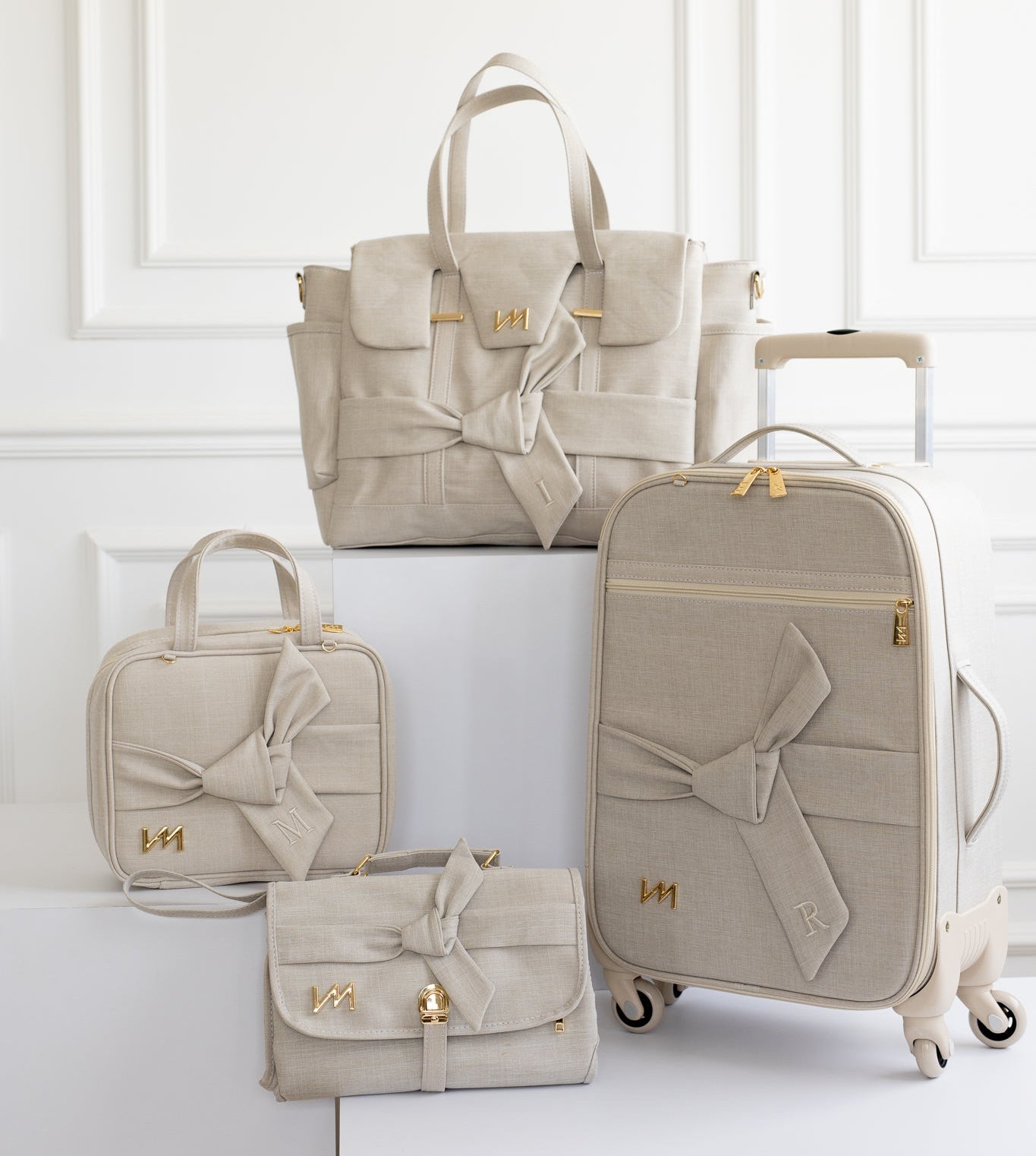 Kit completo da coleção Nós em linho bege com peças únicas e funcionais para o seu dia a dia.