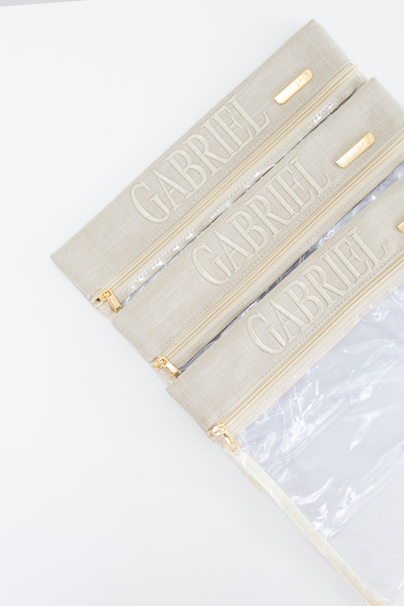 Com design delicado e sofisticado, o kit de saquinhos da Coleção Nós Bege é feito em Linho exclusivo, com toque macio e visual elegante. A base transparente facilita a visualização das peças, ideal para a maternidade, viagens e organização do dia a dia.