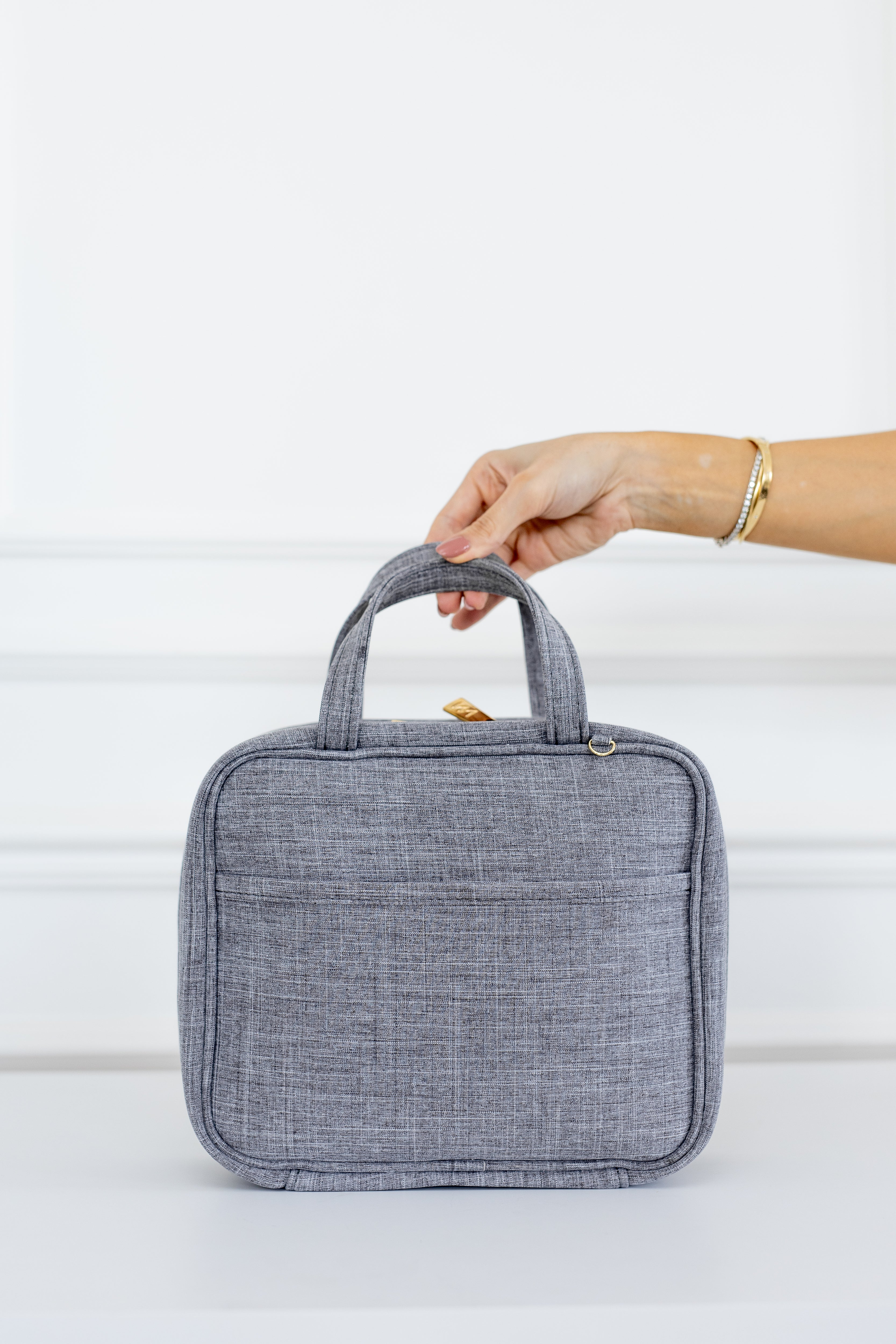 Delicada e versátil, a frasqueira térmica da Coleção Nós Cinza é ideal para pequenas saídas com o bebê. Seu detalhe frontal em nó traz um charme único, com interior funcional e impermeável. Acompanha alça tiracolo com opção de inicial em metal e personalização em bordado.
