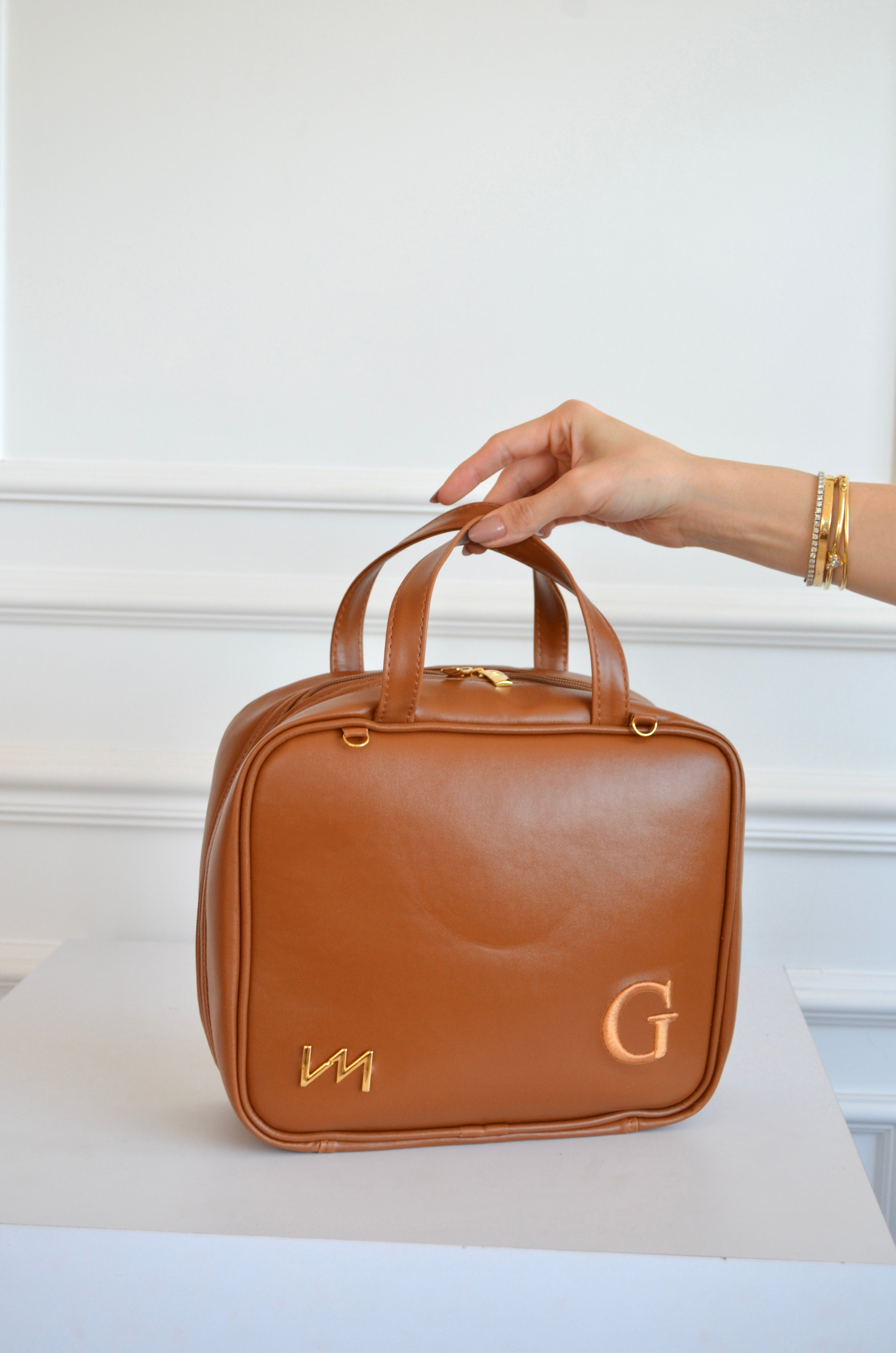 - Frasqueira Térmica caramelo Lisa bordado inicial G OUTLET