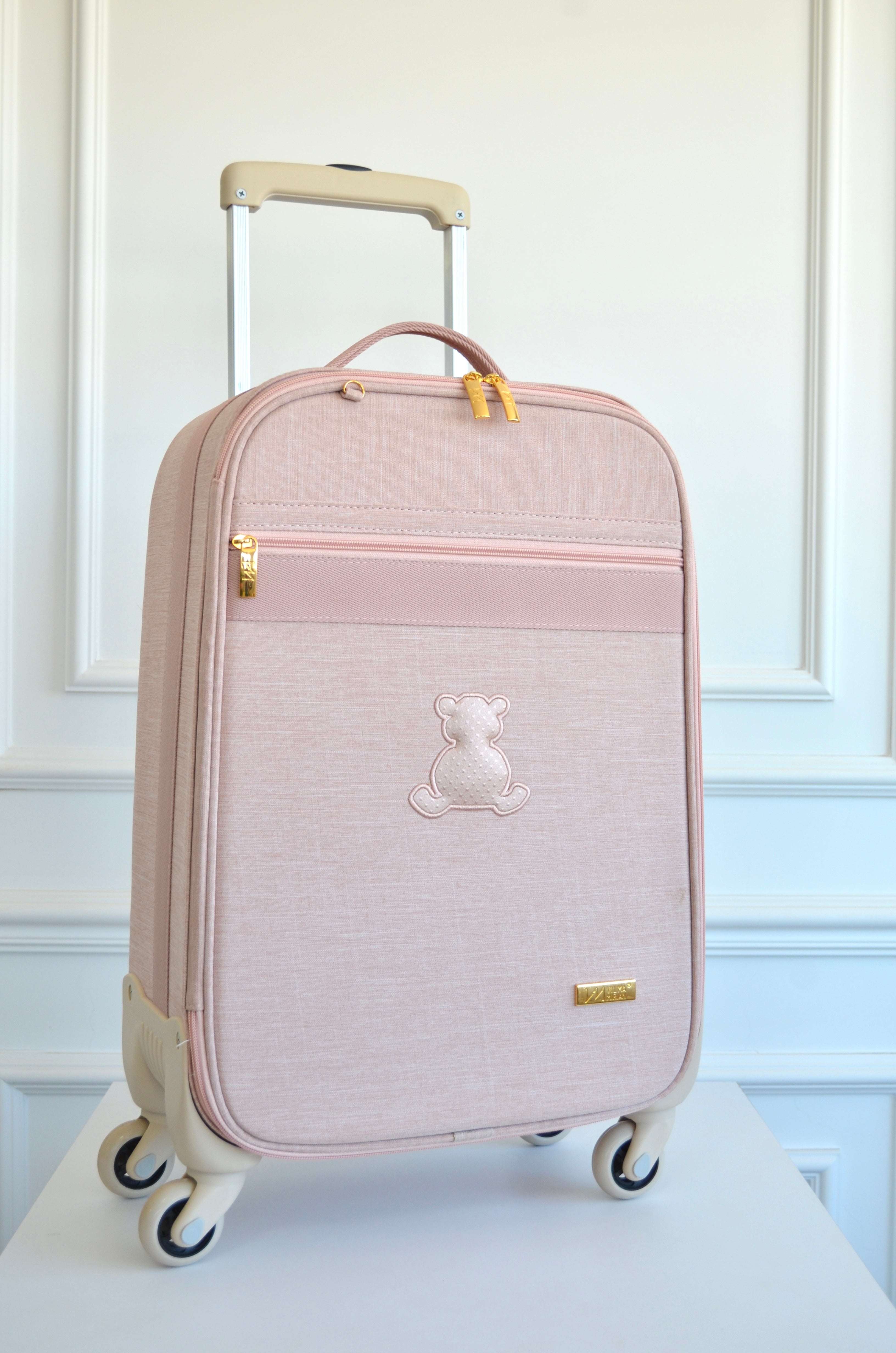 - Mala de Rodinhas Glam Rosé com fita rosé bordado urso Outlet com 30%.