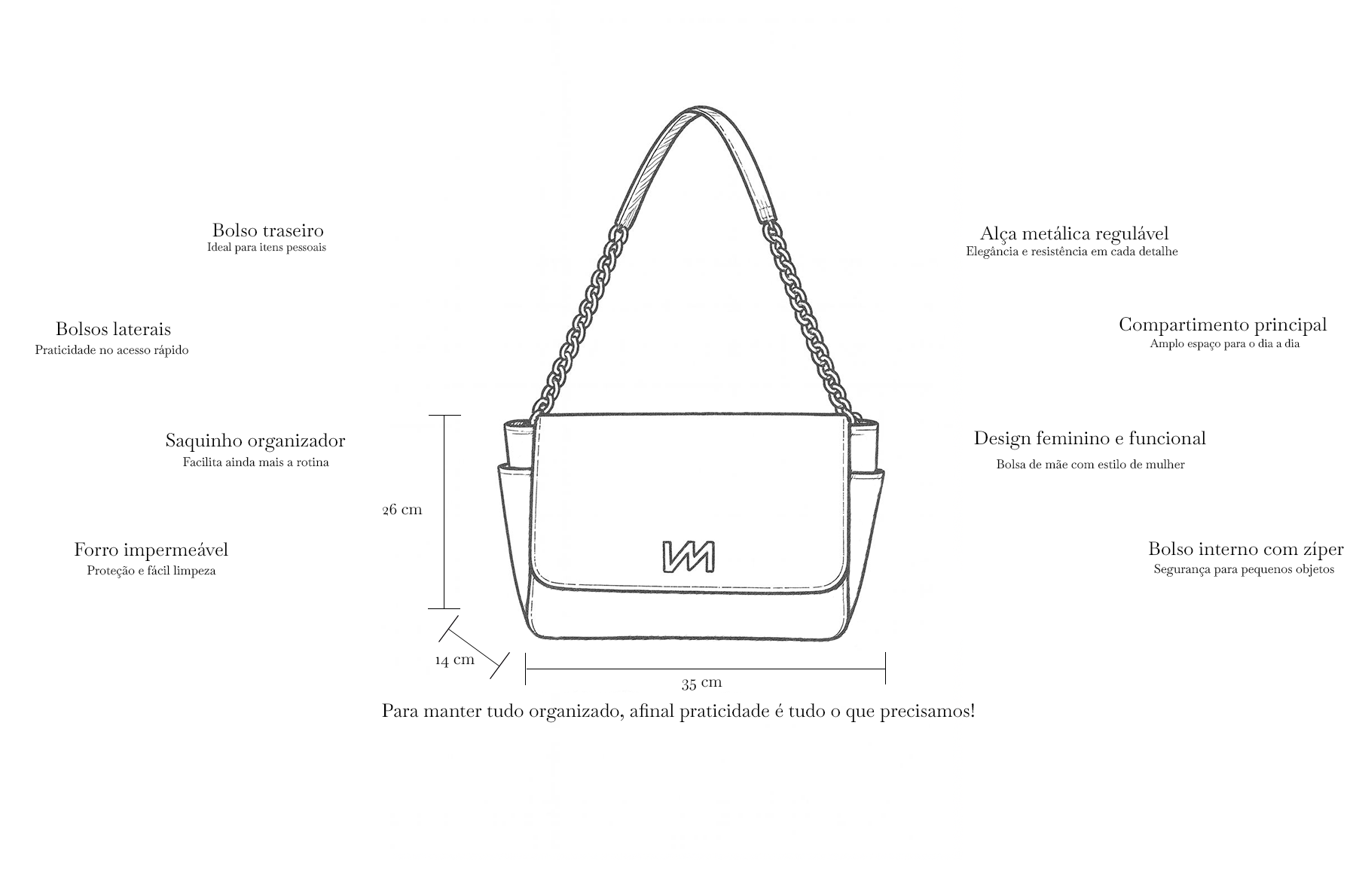 Os acessórios serão confeccionados na mesma cor e coleção da bolsa.