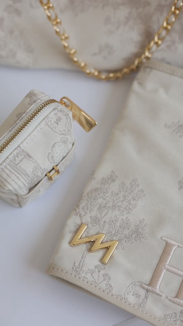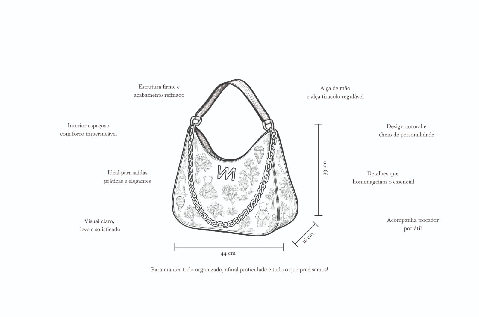 Os acessórios serão confeccionados na mesma cor e coleção da bolsa.